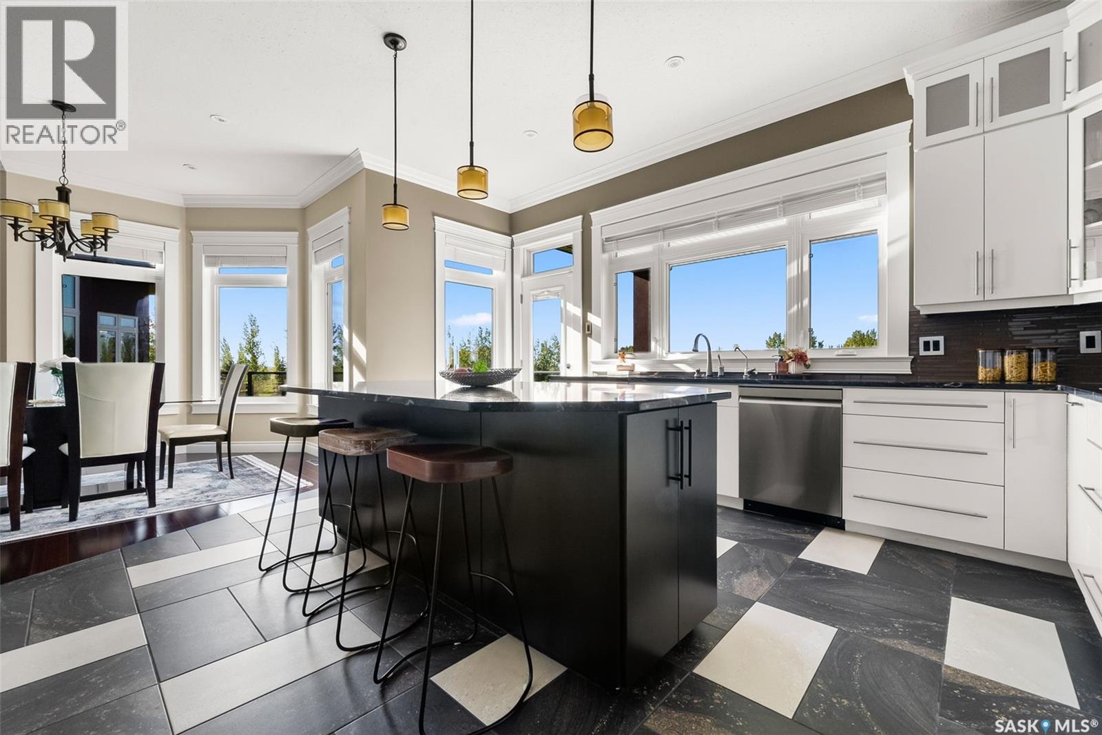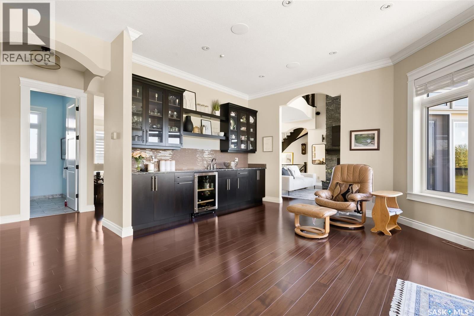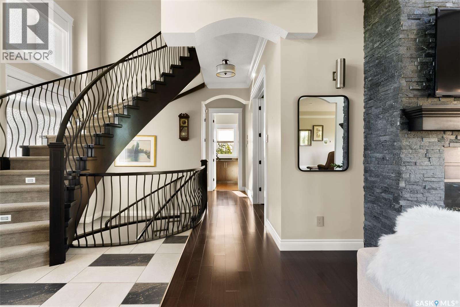 Step into unmatched luxury with this one-of-a-kind custom property at Mission Pointe Estates, offering over 4,075 sq. ft. on the main and second levels plus a fully developed 2,500 sq. ft. walkout. Situated on 4.89 landscaped acres, this home blends elegance, comfort, and technology. Grand foyer with heatee tile and sweeping spiral staircase set the tone for the home’s sophistication. Living room features expansive windows and a cozy gas fireplace, opening to the dining area with bar fridge and custom cabinetry. The chef’s kitchen boasts Sub-Zero refrigeration, Jenn-Air appliances, walk-in pantry with heated tile, Culligan water filtration, and direct access to a three-season sunroom. The primary suite is a private retreat with cork flooring, his & hers walk-ins, spa-inspired ensuite with heated tile, Bain Ultra soaker tub, dual vanities, and a built-in mirror TV. Upstairs are 3 bedrooms and 3 baths, including 2 ensuites and a shared bath with tub/shower, plus a large bonus room. The walkout lower level includes a theatre with projector/screen, wet bar with wine room, exercise studio, sewing/office space, and an additional bedroom with ensuite. In-floor heat runs throughout, and 4 rooms offer direct backyard access. Smart home features include Savant automation for TVs, fireplaces, and blinds, Apple TV, Xbox/DVD integration, and 3 Shaw Direct satellite dishes. Bedrooms have blackout + lace blinds, while automated blinds are in the kitchen, living, and theatre. Additional highlights include heated mudroom tile, central vac with extra hoses, security with 8 cameras, fire sprinklers, and a heated 5-car garage with wheelchair-ready access. Outdoors, enjoy a multi-purpose sport court, solar-lit driveway, upper & lower decks with built-in BBQs, underground sprinklers, and wiring for a future hot tub. This property offers acreage living at its finest — a perfect blend of luxury, technology, and comfort in a private setting. Ask your REALTOR® for a full list of features! (id:17834)