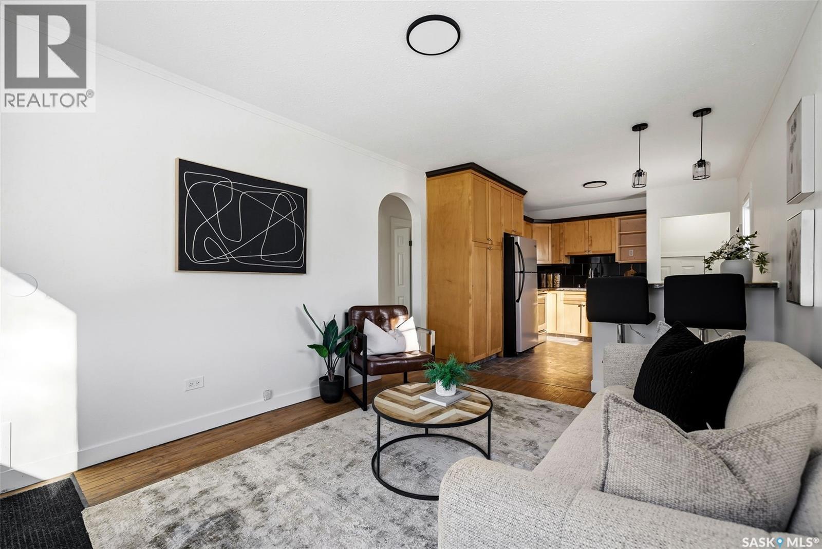 This charming home is the perfect opportunity for first-time buyers! Ideally located on a great block of Forget Street with new construction enhancing the neighbourhood, this 2 bedroom, 1 bathroom property offers a blend of character and many recent upgrades. The renovated kitchen opens to the living room and features beautiful maple cabinetry with a wall pantry, laminate countertops, tiled backsplash, new pendant lighting, stainless steel appliances including an induction stove, and a new kitchen faucet (2026). The living room showcases original hardwood floors, adding warmth and character to the space. The updated bathroom includes a soaker tub, new vanity and skirted toilet, tiled flooring, and a PVC window. Both bedrooms feature updated laminate flooring, and one bedroom and the kitchen also offer upgraded PVC windows. Additional 2026 updates include professionally painted main floor walls, ceilings, baseboards, and trim, freshly painted basement floors, replaced closet flooring, new light fixtures throughout the main floor, new blinds, updated electrical cover plates, new air returns on the main floor, replaced and added shut-off valves, a new sump pump, and a freshly cleaned sewer line. The full concrete basement is open for future development and includes rough-in plumbing for a second bathroom. Other major upgrades include PVC plumbing, a mid-efficiency furnace, and central air conditioning. Outside, you’ll find a fully fenced 37’ x 125’ lot, a single detached garage off the back alley, and extra parking space. A fantastic starter home in a growing area! (id:17834)