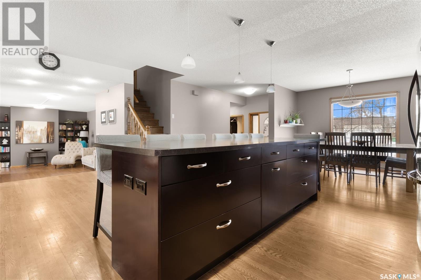 Welcome to this 5-bedroom, 4-bathroom home in the highly desirable Wood Meadows neighborhood. Thoughtfully updated and well-maintained, this home offers a spacious and functional layout perfect for families. The heart of the home is the stunning chef’s kitchen, featuring an 11-ft island with soft-close drawers including convenient corner pullouts and an abundance of cabinet & counter space. Designed with both style & functionality in mind, this space is perfect for cooking, entertaining, and everyday living. Adjacent to the kitchen, the dining area is large enough to accommodate a 12-seater table, while the sunken living room provides a cozy retreat, complete with a gas line ready for a future fireplace. A main floor bedroom and a 2-piece bath with laundry add convenience to this well-designed space. Upstairs, the primary suite serves as a private sanctuary, offering a walk-in closet with custom shelving and a 4-piece ensuite. Two additional generously sized bedrooms and another full bathroom complete the second level. The fully developed lower level expands the home’s living space with a spacious family room, an additional bedroom (window is not egress), a den, a 3-piece bathroom, and a utility/storage room. Bonus: Enjoy the 22’x12’ three-season sunroom, an incredible extension of the home that’s perfect for entertaining or relaxing. The fully fenced backyard with a beautiful park adjacent to the property, featuring walking paths and a play structure, making it an ideal setting for families. Located on a quiet crescent, this home is within walking distance to St. Marguerite Bourgeoys School and W.F. Ready School, as well as all east-endamenities. Additional features include underground sprinklers (front & back), central vacuum with kick sweep, wired smoke and carbon monoxide detectors, an alarm system, a storage shed, vinyl fence and hardwood flooring throughout. Come view this family home in a fantastic community. Don’t miss out—schedule your private viewing! (id:17834)
