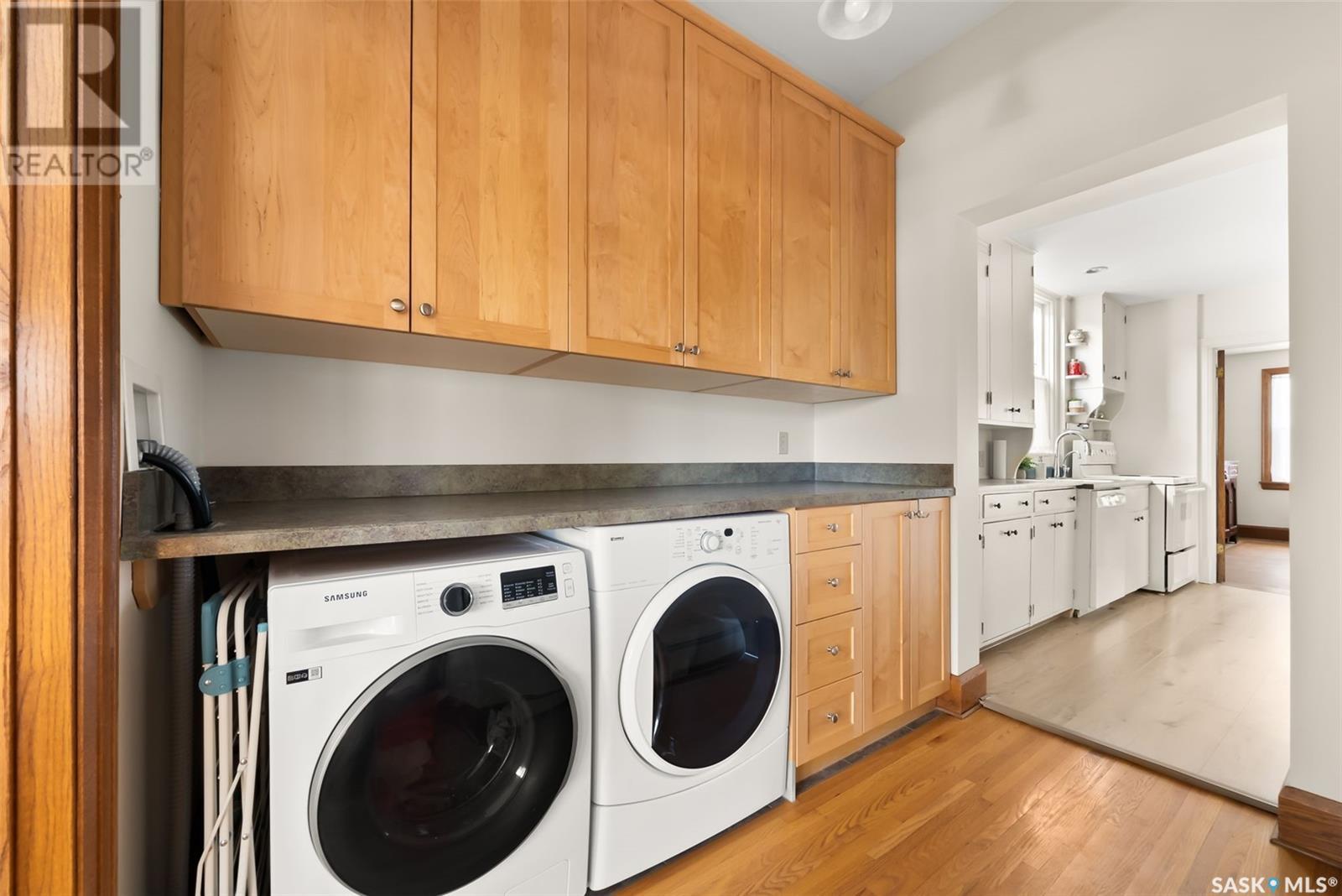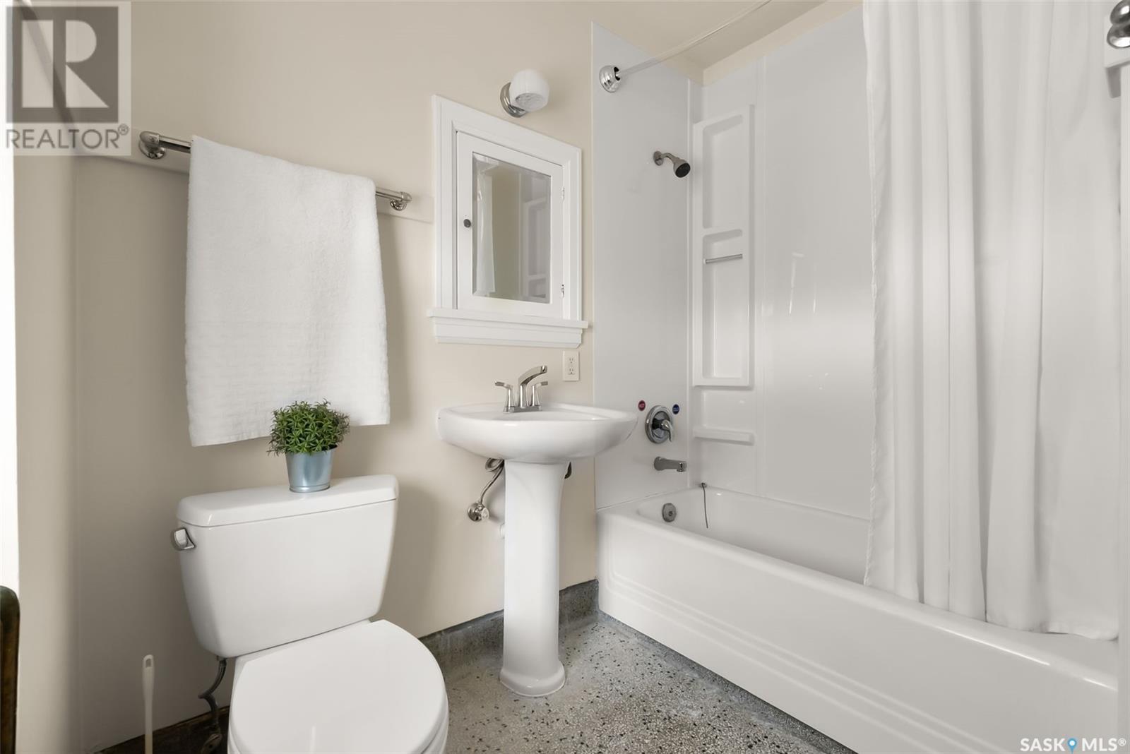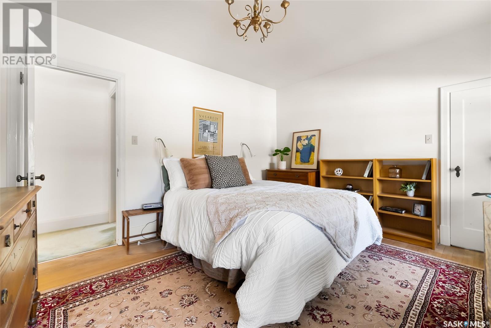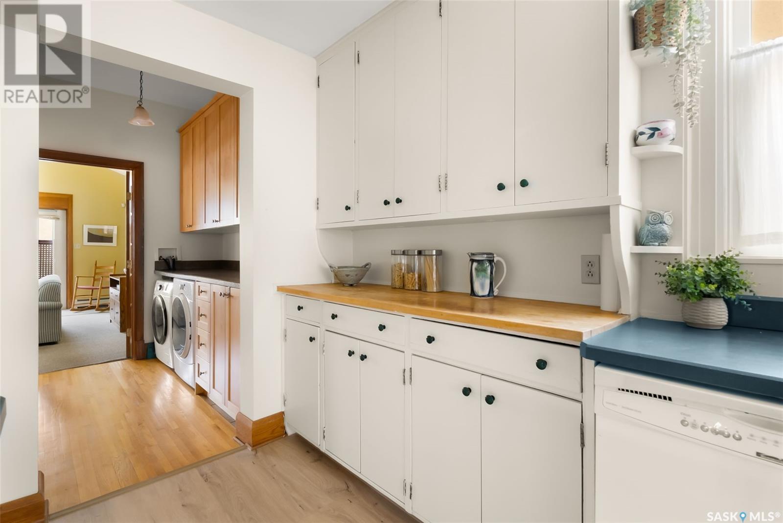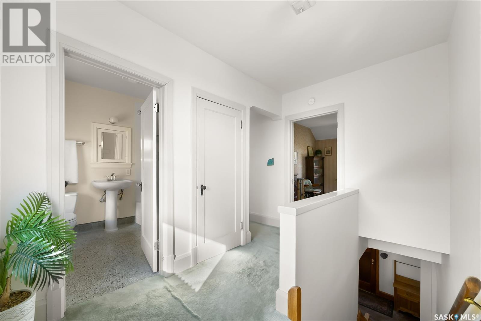 Nestled in the prestigious Crescents neighborhood, this Francis Henry Portnall-designed character home blends timeless elegance with modern convenience. Lovingly maintained and thoughtfully updated, it offers exceptional charm and functionality. A 2007 main floor addition, built on piles, enhances the space with a bright family room featuring vaulted ceilings, windows on three sides, and garden doors to a south-facing deck and backyard—ideal for relaxation and entertaining. The foyer welcomes you with original coat hooks and a large closet. French door leads to the front living room, where an original brick fireplace is flanked by built-in bookshelves with glass doors. Hardwood floors flow through the living and dining rooms, maintaining the home’s rich character. The formal dining room, perfect for entertaining, connects to a kitchen with original ceiling-height cabinetry, updated countertops, a butcher block section, a pantry, and a cozy eating nook. Newer vinyl plank flooring and modern appliances enhance style and function. A main floor three-piece bathroom adds convenience, while a laundry room off the kitchen offers extra counter space and maple cabinetry. Original staircase leads to three hardwood-floored bedrooms and an updated four-piece bathroom with a refinished tub, terrazzo flooring, and modernized plumbing. A large linen closet provides additional storage. Basement includes a rec room, utility room, and storage with an included safe. A new boiler system (2011) and updated windows improve energy efficiency. The exterior was re-stuccoed (2019), and updated eavestroughs ensure durability. The oversized single detached garage, built in 2007, provides ample parking and storage, featuring upgraded electrical and shelving. Ideally located, this home is a short walk to downtown, Wascana Park, The Crescents Elementary School, and Cathedral shops. Own a piece of Regina’s history in one of its most sought-after neighborhoods. Don’t miss this rare opportunity! (id:17834)