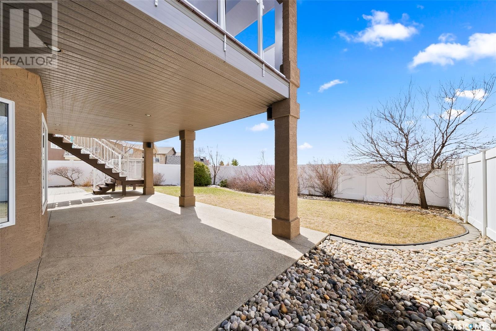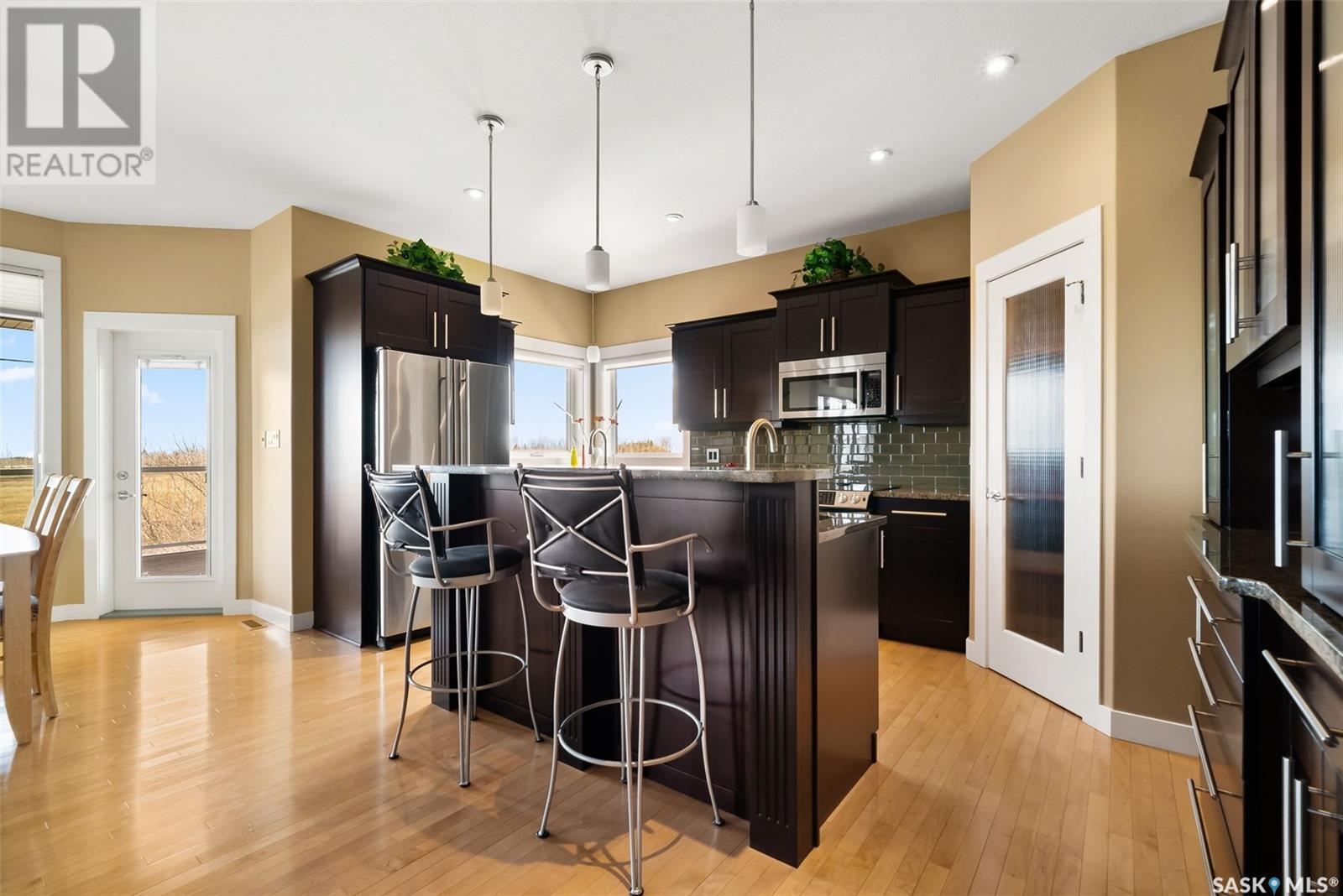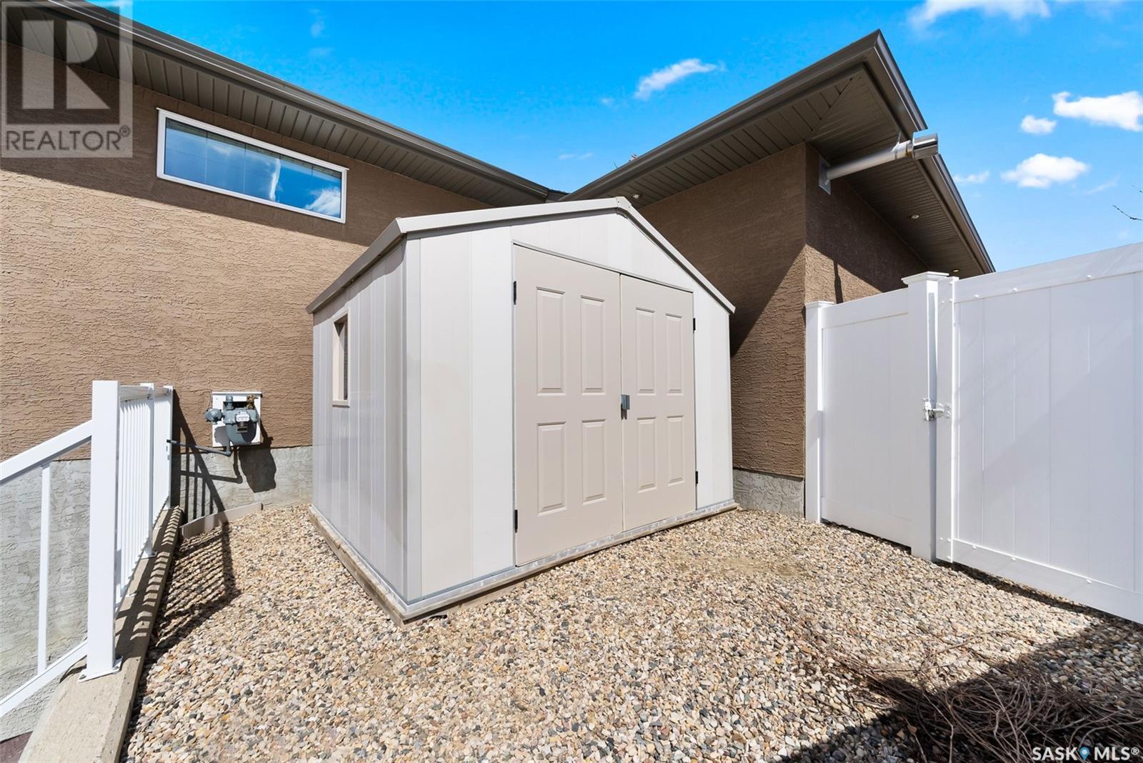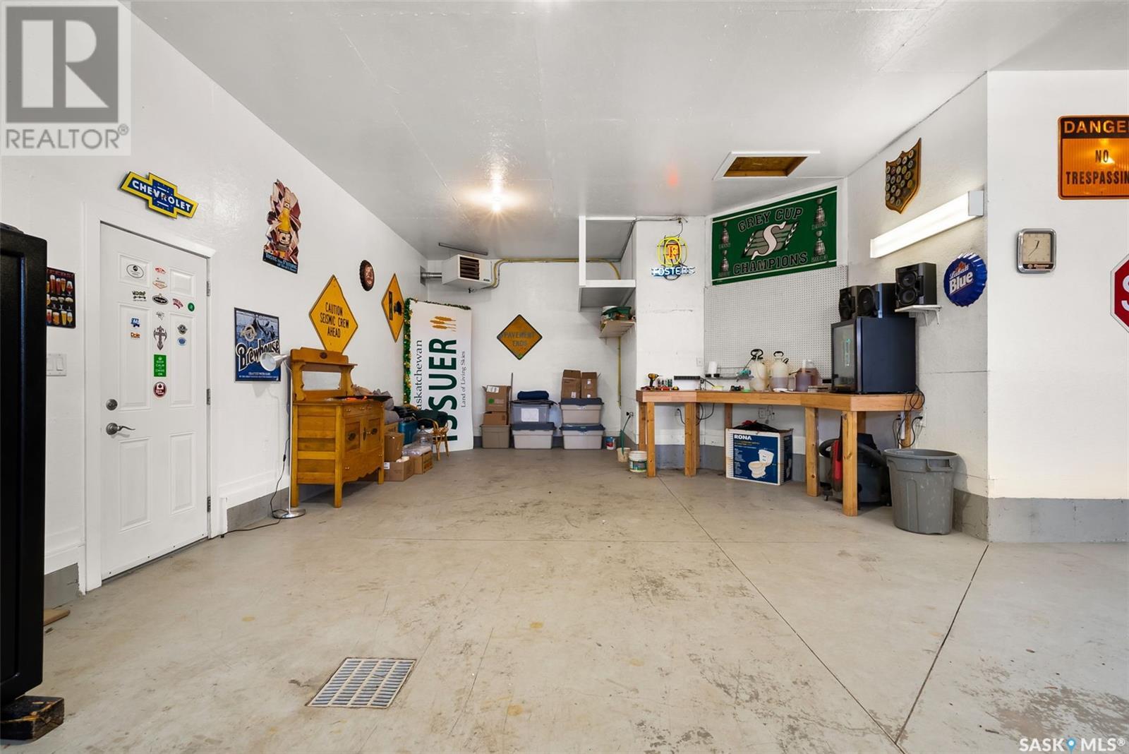 Rare Walkout Bungalow in Balgonie — Spacious, Upgraded, and Just 15 Minutes from Regina! Welcome to this immaculate 1771 sq ft walkout bungalow on a massive 9147 sq ft corner lot. With 4 bedrooms, 3 bathrooms, and a smart, upgraded layout, this home offers comfort, privacy, and style—situated at the end of a quiet street with only one neighbor. Step into a spacious foyer with a walk-in closet and open glass rail staircase. A front office doubles as a bedroom, while a second bedroom and full bath are tucked off to one side. The private primary suite features a luxurious 5-piece ensuite, walk-in closet, and direct access to the soundproofed laundry room. The heart of the home is the open-concept kitchen, living, and dining area, with granite counters, hardwood floors, built-in speakers, and prairie views. The dining room opens to a covered deck—perfect for relaxing or entertaining. Downstairs, the bright walkout basement includes a large open area ideal for a home theatre or games room (wet bar rough-in in place), a 3-piece bath, fourth bedroom, and utility room. The fully fenced yard includes a patio wired for a hot tub, mature landscaping, underground sprinklers, RV parking, and an 8×10 shed. A true highlight is the 4-car dream garage—over 1000 sq ft of heated space with 11’ ceilings, 8’ doors, fresh paint, shelving, and tandem parking up to 41’ long. Built on piles, this home also offers triple-zone heating, triple-pane windows, a new 2023 roof, custom blinds, central air, a water softener, and so much more. Don’t miss this rare opportunity to enjoy space, quality, and peaceful living just outside the city. (id:17834)