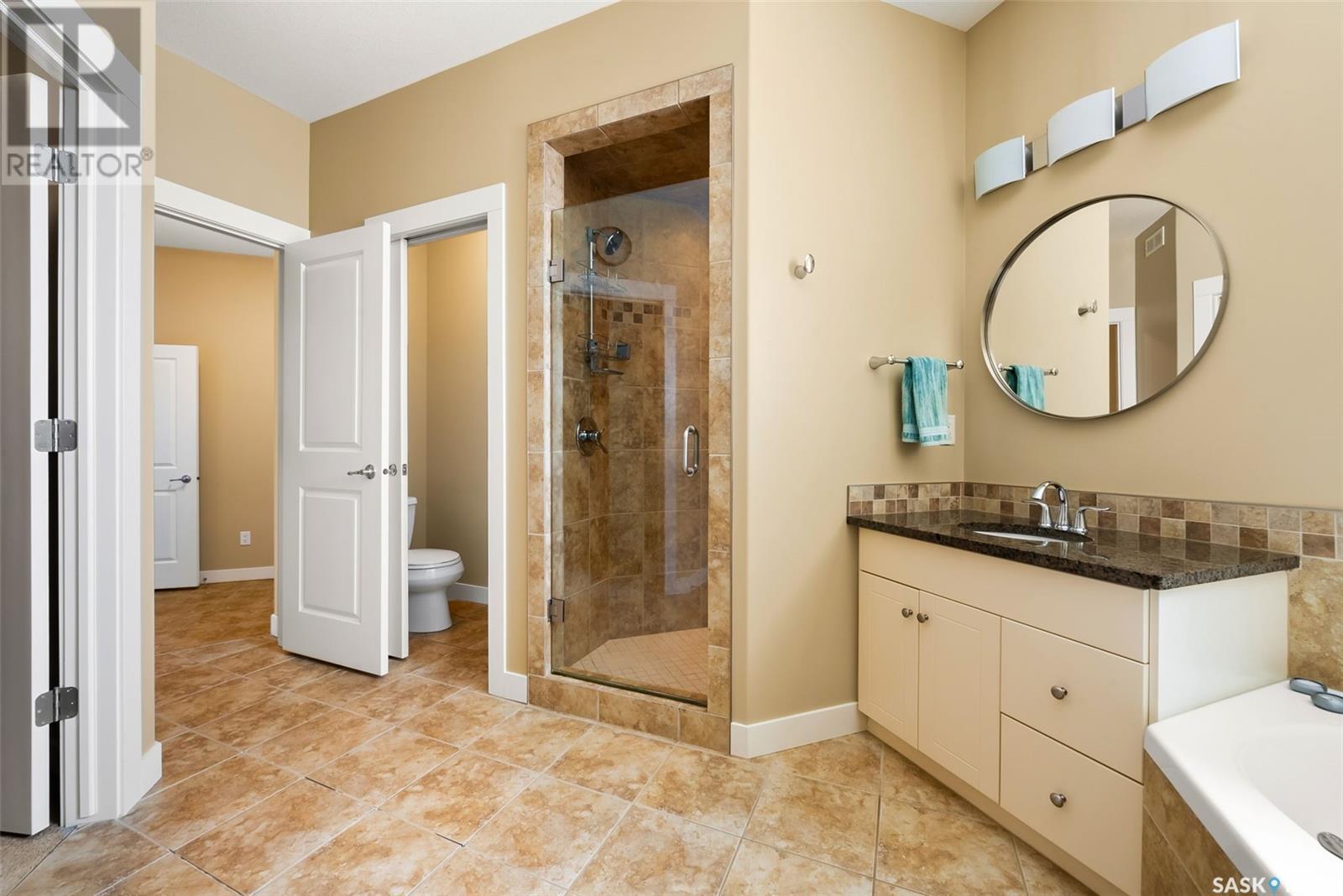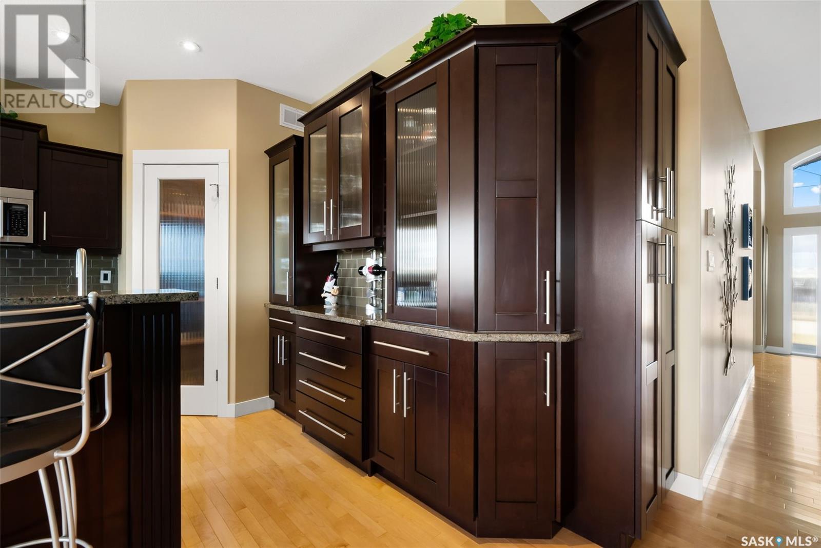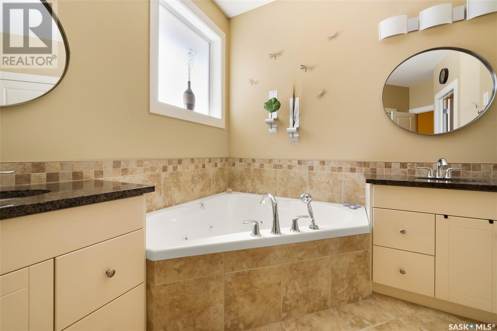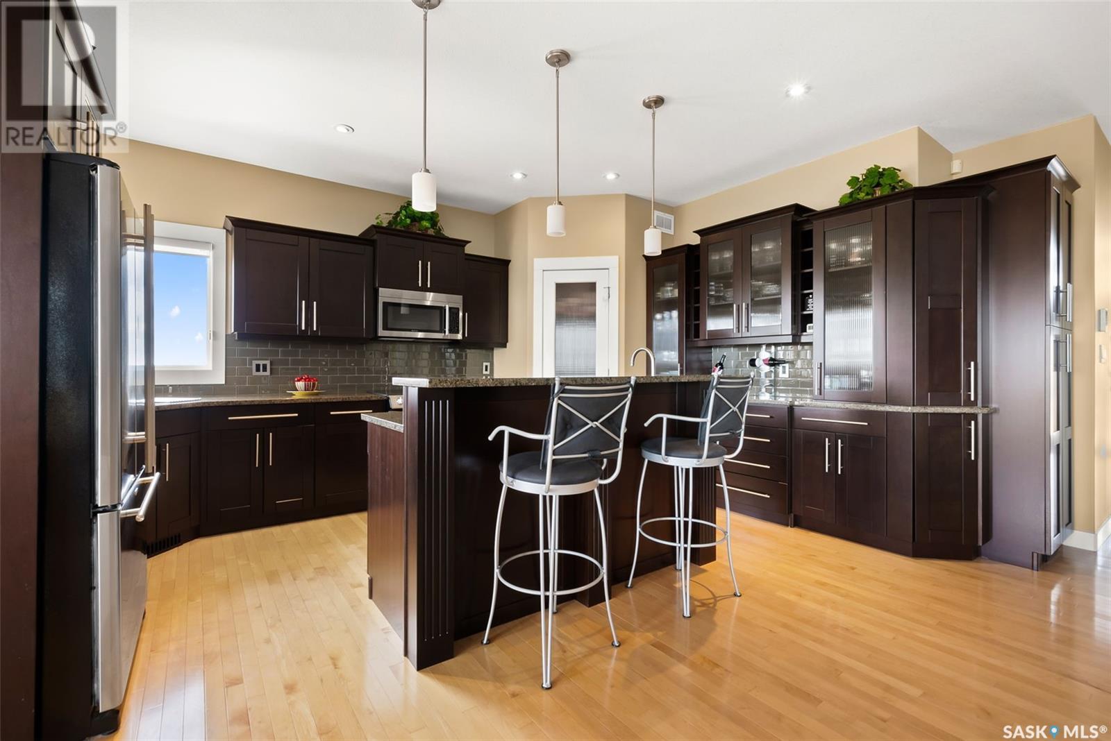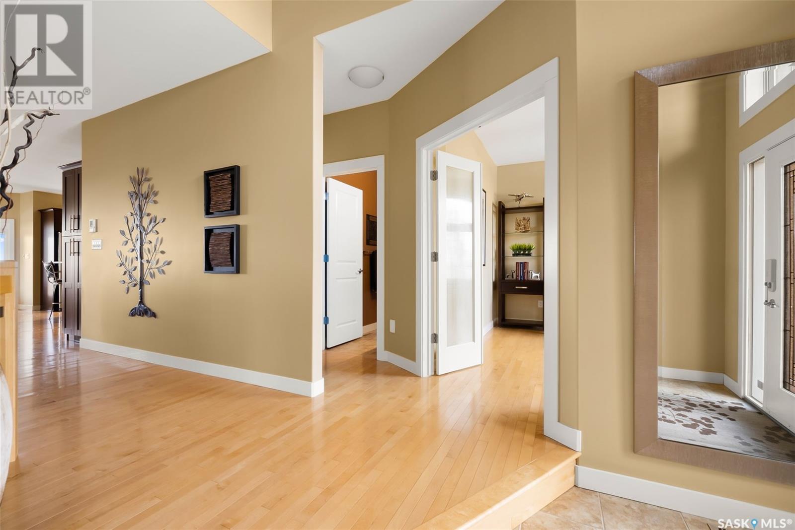 Rare Walkout Bungalow in Balgonie — Spacious, Upgraded, and Just 15 Minutes from Regina! Welcome to this immaculate 1771 sq ft walkout bungalow on a massive 9147 sq ft corner lot. With 4 bedrooms, 3 bathrooms, and a smart, upgraded layout, this home offers comfort, privacy, and style—situated at the end of a quiet street with only one neighbor. Step into a spacious foyer with a walk-in closet and open glass rail staircase. A front office doubles as a bedroom, while a second bedroom and full bath are tucked off to one side. The private primary suite features a luxurious 5-piece ensuite, walk-in closet, and direct access to the soundproofed laundry room. The heart of the home is the open-concept kitchen, living, and dining area, with granite counters, hardwood floors, built-in speakers, and prairie views. The dining room opens to a covered deck—perfect for relaxing or entertaining. Downstairs, the bright walkout basement includes a large open area ideal for a home theatre or games room (wet bar rough-in in place), a 3-piece bath, fourth bedroom, and utility room. The fully fenced yard includes a patio wired for a hot tub, mature landscaping, underground sprinklers, RV parking, and an 8×10 shed. A true highlight is the 4-car dream garage—over 1000 sq ft of heated space with 11’ ceilings, 8’ doors, fresh paint, shelving, and tandem parking up to 41’ long. Built on piles, this home also offers triple-zone heating, triple-pane windows, a new 2023 roof, custom blinds, central air, a water softener, and so much more. Don’t miss this rare opportunity to enjoy space, quality, and peaceful living just outside the city. (id:17834)