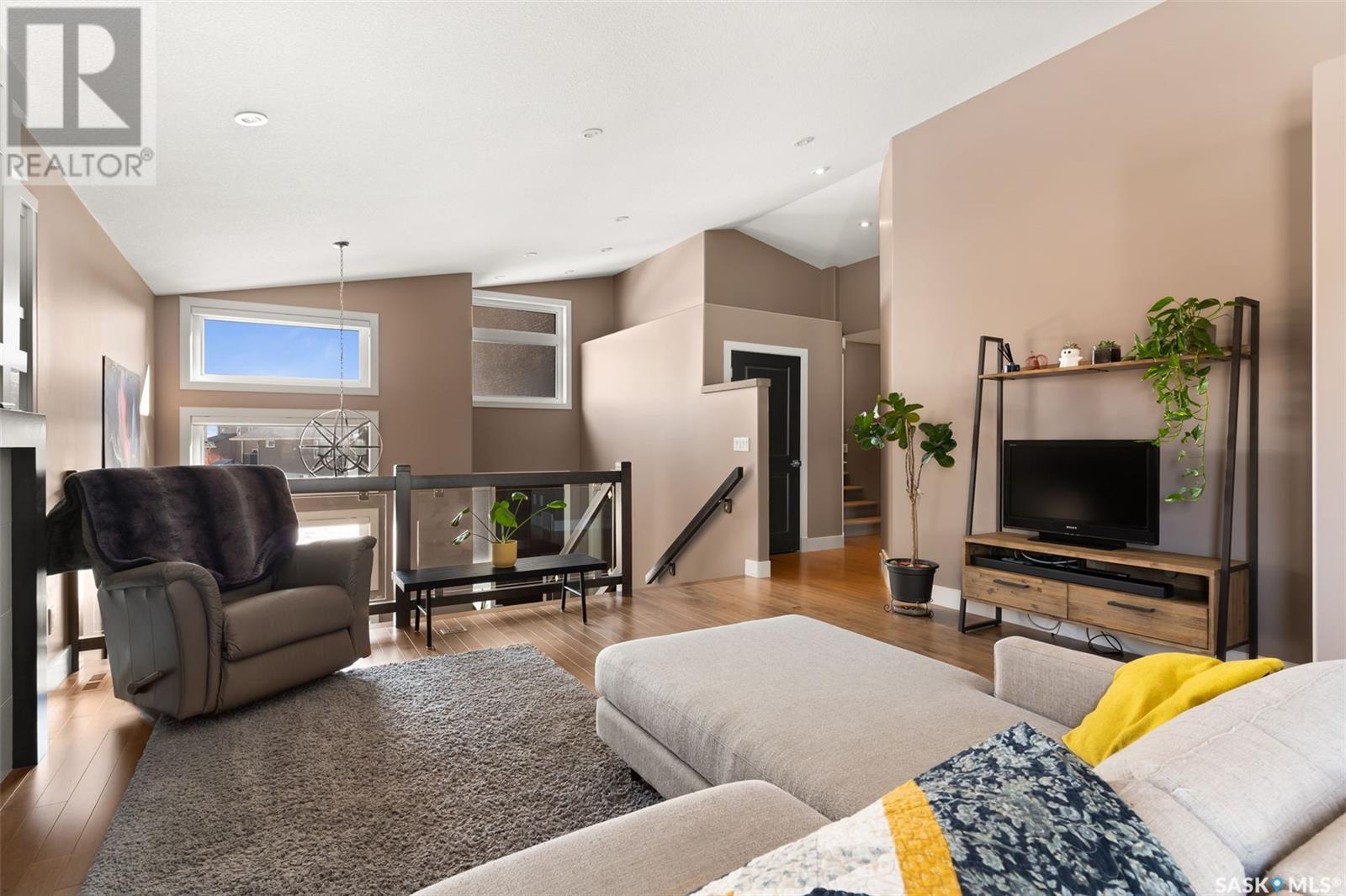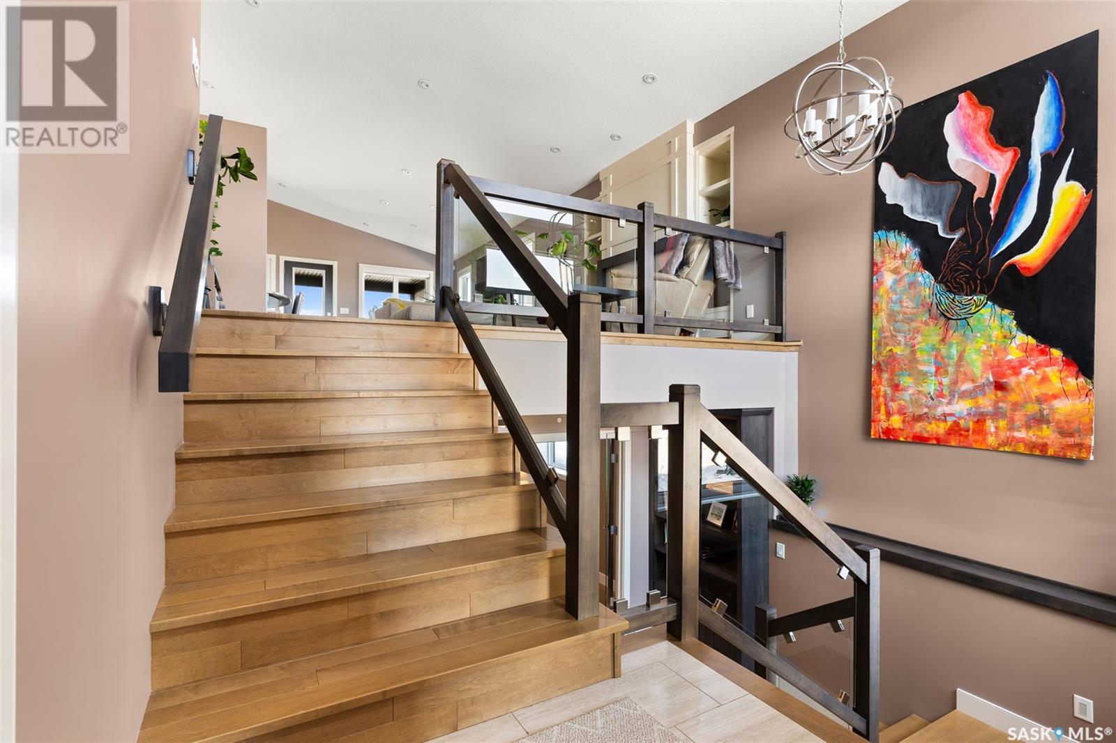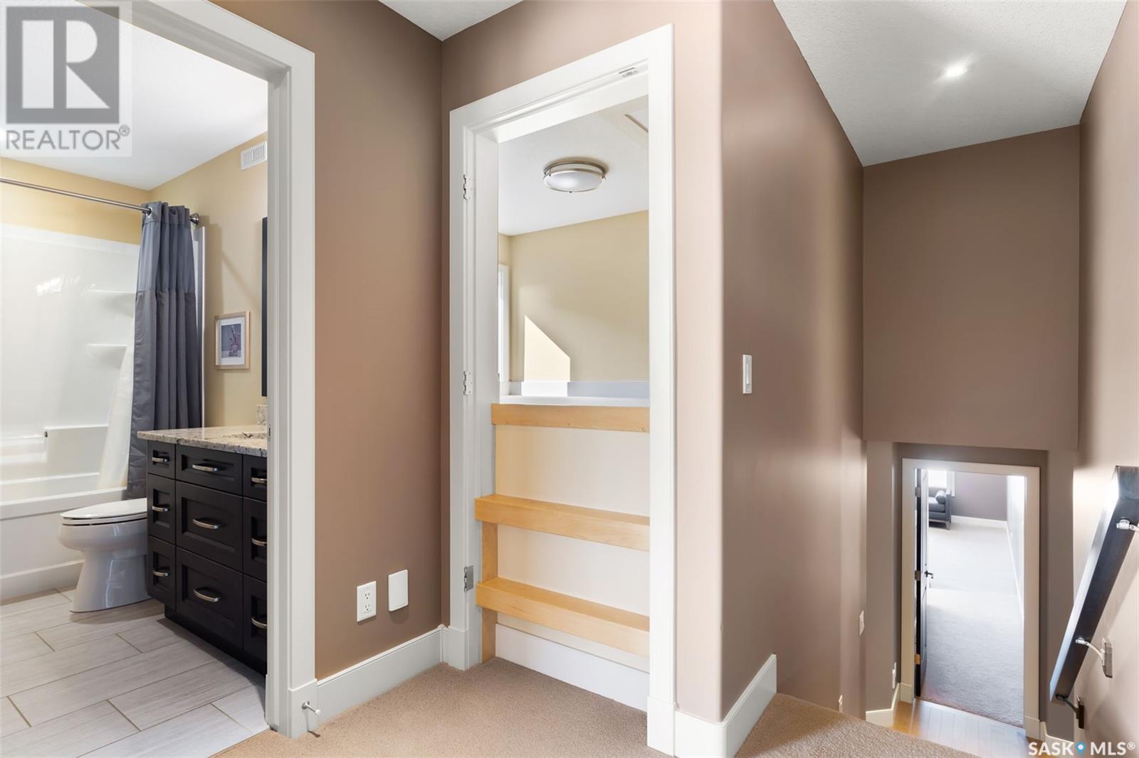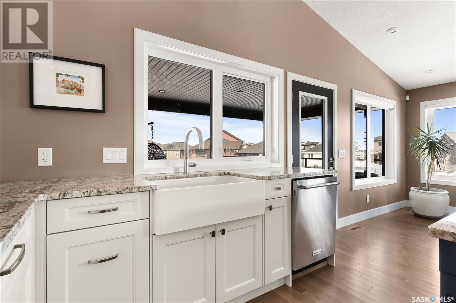 Custom-built home by Munro Homes and located in The Creeks— this exquisite by level offers over 3500 sqft of living space. Sitting on an impressive 11,000+ sq. ft. pie-shaped lot, this home blends exceptional quality with an unbeatable location. You’ll be captivated by the soaring vaulted ceilings, oversized windows that flood the space with natural light, and a warm, inviting color palette. Open-concept main floor features rich hardwood flooring plus a two-toned kitchen, complete with stainless appliances. Spacious primary bedroom includes a walk-in closet and luxurious 5 pc ensuite. Main floor also features a laundry room with built-in cabinetry and a countertop workspace. Mudroom boasts built-in lockers featuring drawers, upper cabinets for extra storage, and a closet. From here, you have direct entry to the heated double garage, which is fully finished and includes a floor drain. 2nd floor offers two bedrooms, a full bathroom, and a unique hidden nook—tucked away behind the linen closet door—perfect as a kids’ fort with its own window and TV wiring. Fully developed basement expands the home’s functionality with two additional bedrooms, a large recreation space, in-floor, plenty of storage, a full four-piece bathroom, and a spacious utility room. Enjoy summer evenings in the screened three-season sunroom, which overlooks the beautifully landscaped backyard featuring a patio, fruit trees, and raised garden boxes with timed irrigation. The yard is fully fenced and offers direct access to the walking path. The front yard is also fully landscaped and includes underground sprinklers and a lush lawn, ensuring effortless maintenance. Additional upgrades include built-in water purification, a HEPA air filtration system, built-in shelving in every closet, and a finished storage area beneath the deck. This home truly stands out for its high-quality construction (built on piles), thoughtful design, and prime location. Don’t miss the opportunity to make it yours! (id:17834)