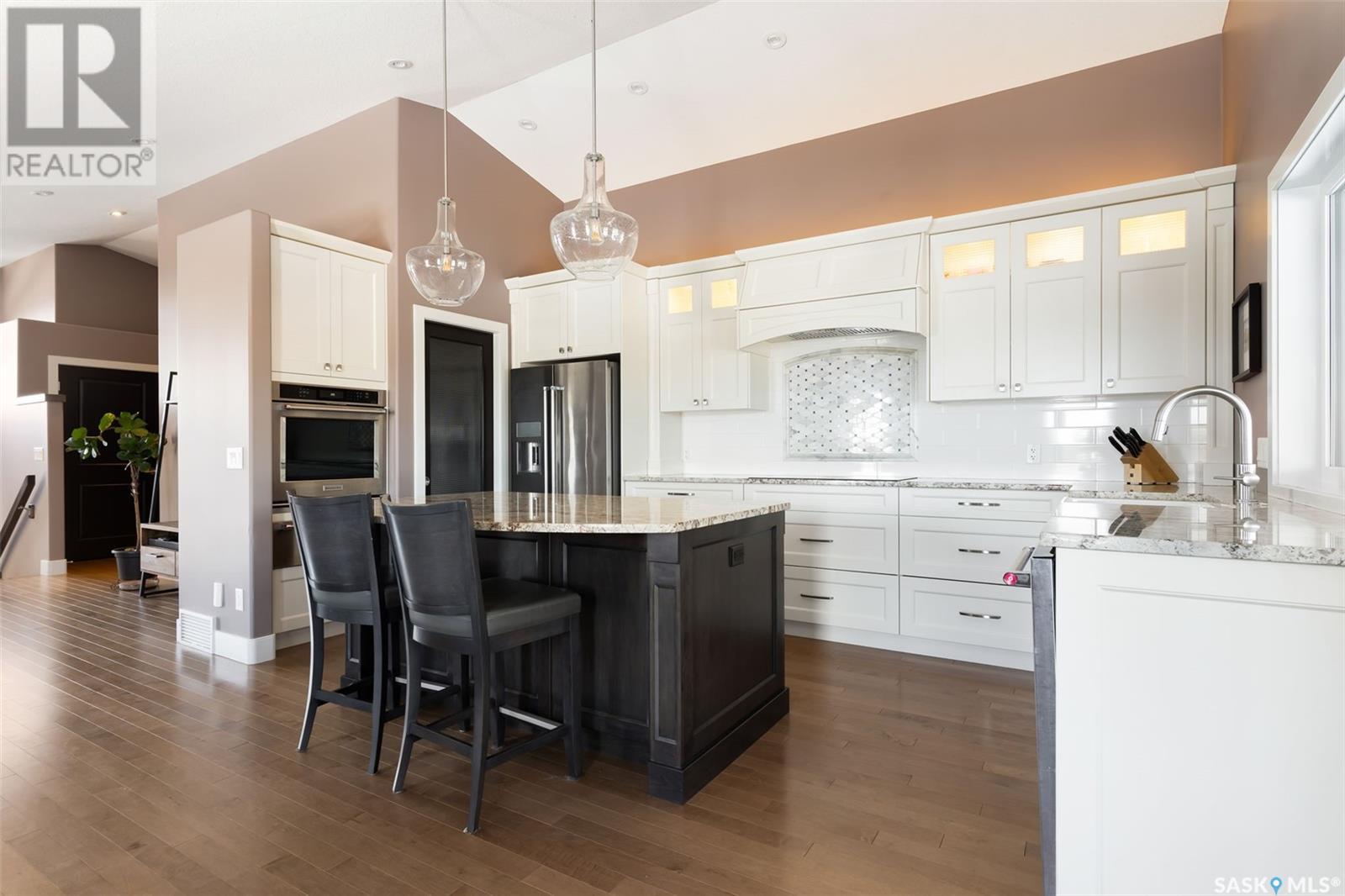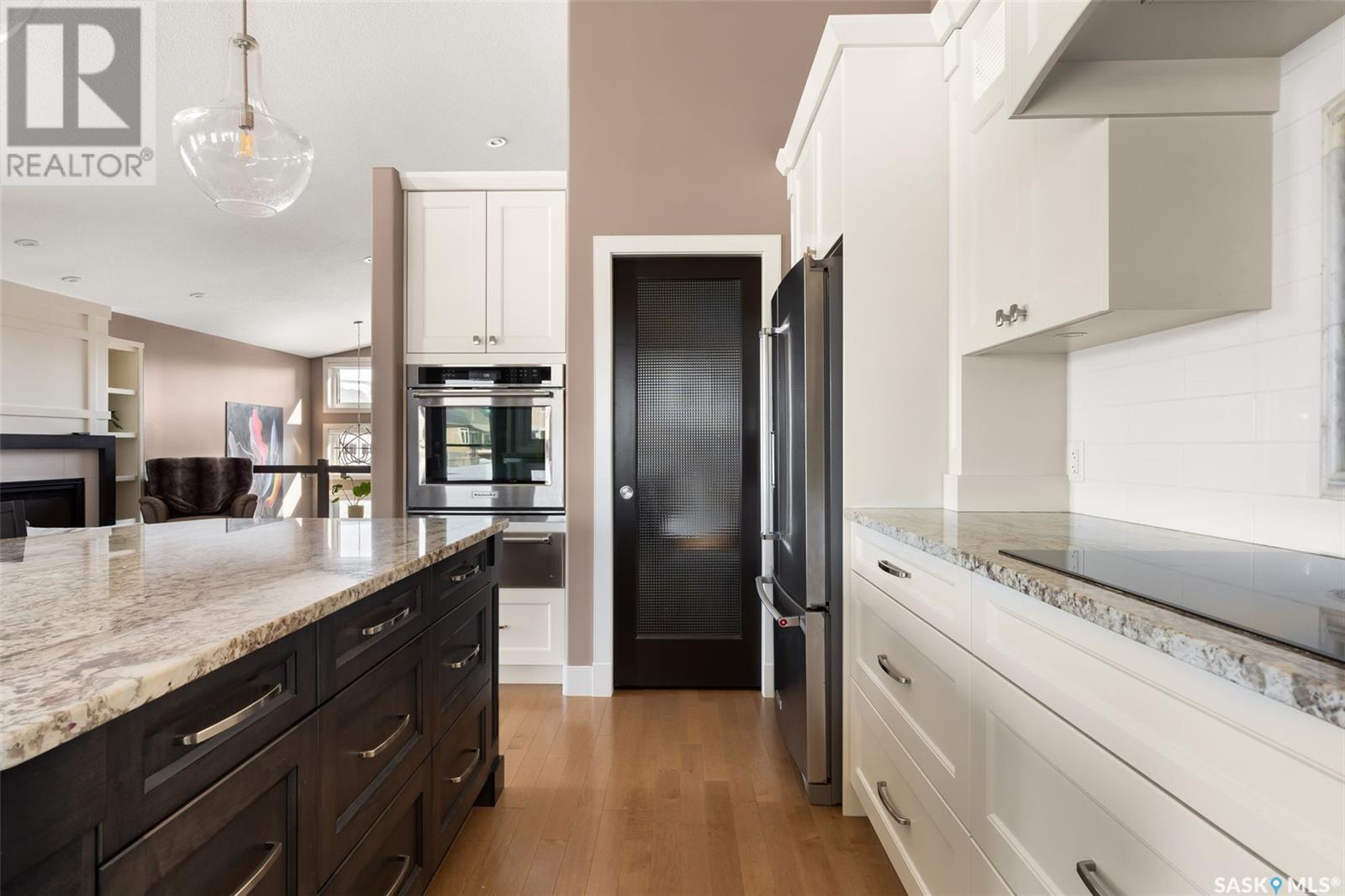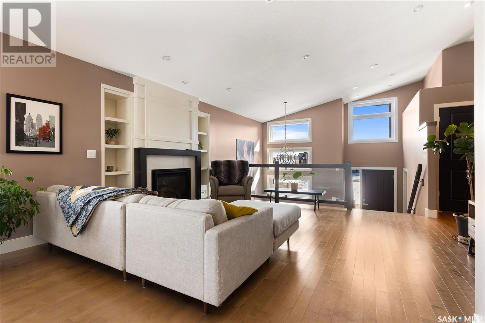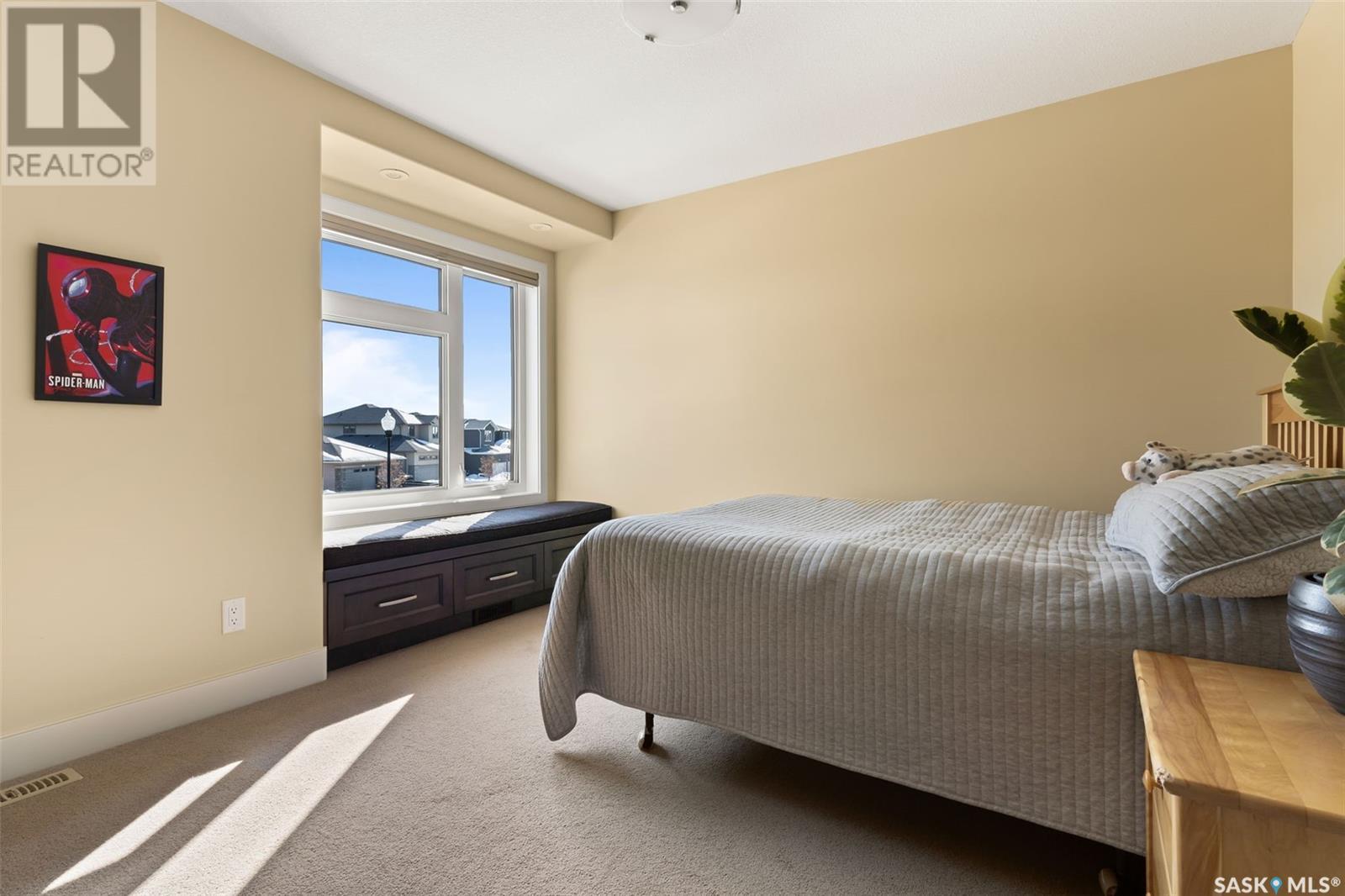 Custom-built home by Munro Homes and located in The Creeks— this exquisite by level offers over 3500 sqft of living space. Sitting on an impressive 11,000+ sq. ft. pie-shaped lot, this home blends exceptional quality with an unbeatable location. You’ll be captivated by the soaring vaulted ceilings, oversized windows that flood the space with natural light, and a warm, inviting color palette. Open-concept main floor features rich hardwood flooring plus a two-toned kitchen, complete with stainless appliances. Spacious primary bedroom includes a walk-in closet and luxurious 5 pc ensuite. Main floor also features a laundry room with built-in cabinetry and a countertop workspace. Mudroom boasts built-in lockers featuring drawers, upper cabinets for extra storage, and a closet. From here, you have direct entry to the heated double garage, which is fully finished and includes a floor drain. 2nd floor offers two bedrooms, a full bathroom, and a unique hidden nook—tucked away behind the linen closet door—perfect as a kids’ fort with its own window and TV wiring. Fully developed basement expands the home’s functionality with two additional bedrooms, a large recreation space, in-floor, plenty of storage, a full four-piece bathroom, and a spacious utility room. Enjoy summer evenings in the screened three-season sunroom, which overlooks the beautifully landscaped backyard featuring a patio, fruit trees, and raised garden boxes with timed irrigation. The yard is fully fenced and offers direct access to the walking path. The front yard is also fully landscaped and includes underground sprinklers and a lush lawn, ensuring effortless maintenance. Additional upgrades include built-in water purification, a HEPA air filtration system, built-in shelving in every closet, and a finished storage area beneath the deck. This home truly stands out for its high-quality construction (built on piles), thoughtful design, and prime location. Don’t miss the opportunity to make it yours! (id:17834)