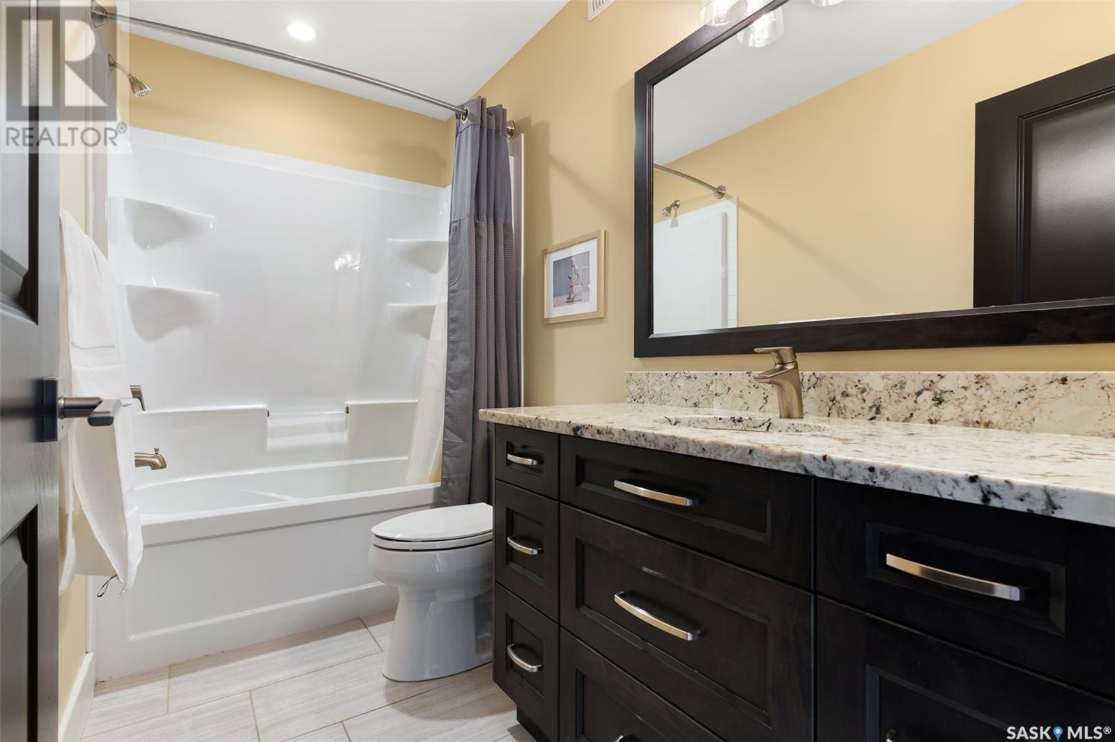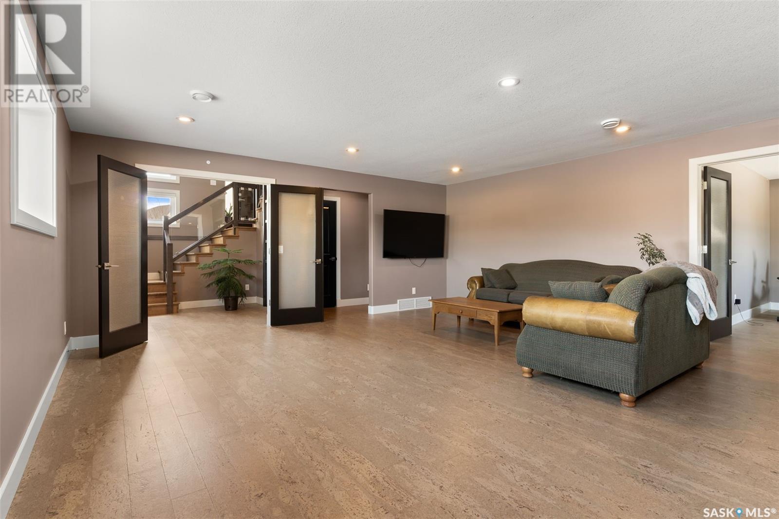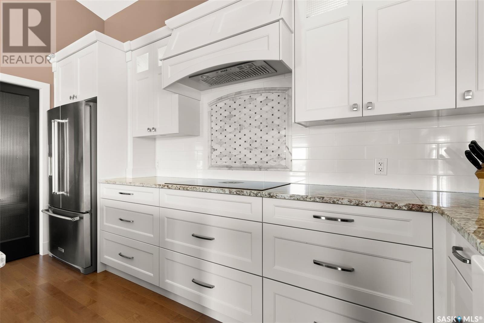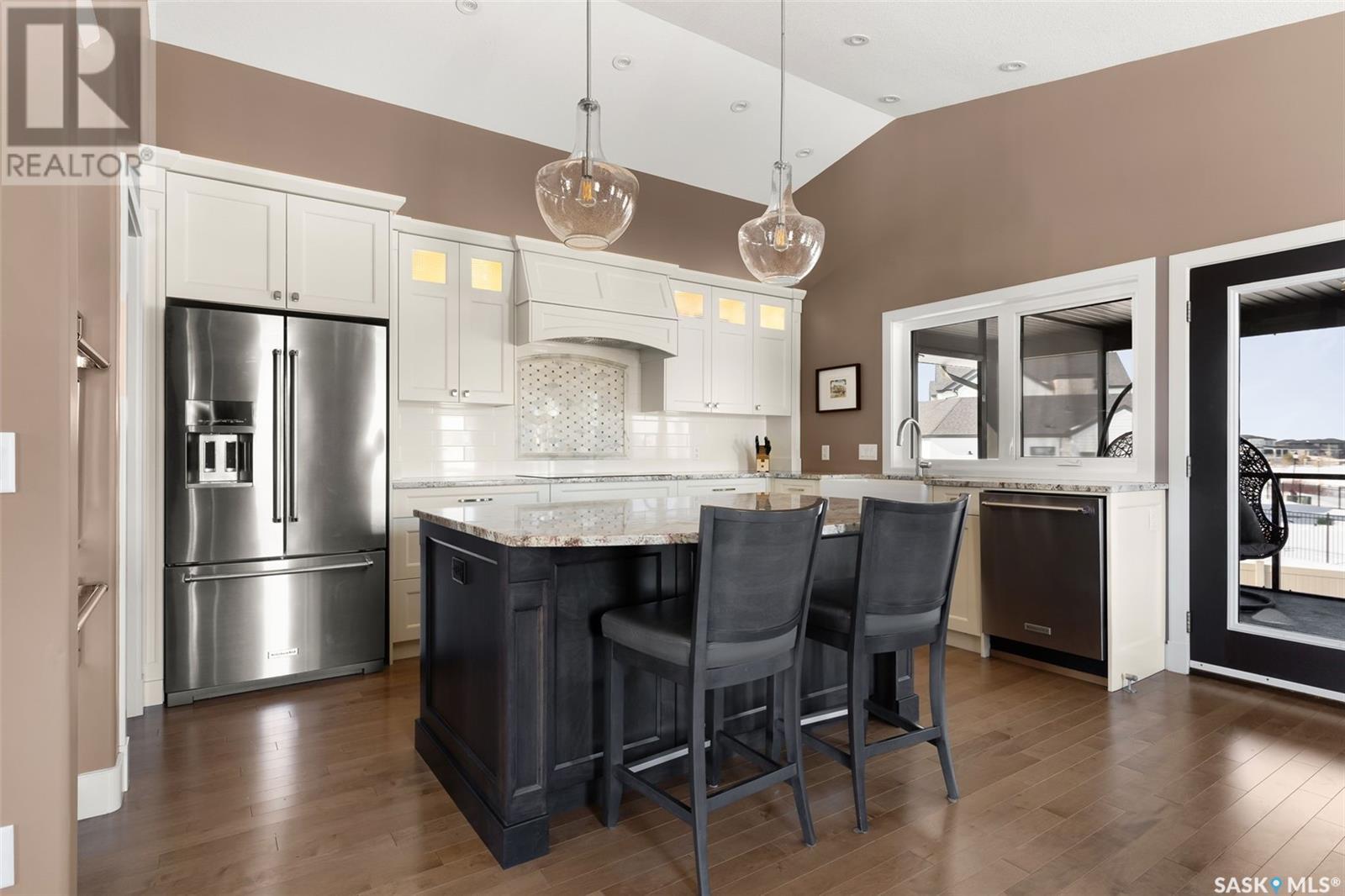 Custom-built home by Munro Homes and located in The Creeks— this exquisite by level offers over 3500 sqft of living space. Sitting on an impressive 11,000+ sq. ft. pie-shaped lot, this home blends exceptional quality with an unbeatable location. You’ll be captivated by the soaring vaulted ceilings, oversized windows that flood the space with natural light, and a warm, inviting color palette. Open-concept main floor features rich hardwood flooring plus a two-toned kitchen, complete with stainless appliances. Spacious primary bedroom includes a walk-in closet and luxurious 5 pc ensuite. Main floor also features a laundry room with built-in cabinetry and a countertop workspace. Mudroom boasts built-in lockers featuring drawers, upper cabinets for extra storage, and a closet. From here, you have direct entry to the heated double garage, which is fully finished and includes a floor drain. 2nd floor offers two bedrooms, a full bathroom, and a unique hidden nook—tucked away behind the linen closet door—perfect as a kids’ fort with its own window and TV wiring. Fully developed basement expands the home’s functionality with two additional bedrooms, a large recreation space, in-floor, plenty of storage, a full four-piece bathroom, and a spacious utility room. Enjoy summer evenings in the screened three-season sunroom, which overlooks the beautifully landscaped backyard featuring a patio, fruit trees, and raised garden boxes with timed irrigation. The yard is fully fenced and offers direct access to the walking path. The front yard is also fully landscaped and includes underground sprinklers and a lush lawn, ensuring effortless maintenance. Additional upgrades include built-in water purification, a HEPA air filtration system, built-in shelving in every closet, and a finished storage area beneath the deck. This home truly stands out for its high-quality construction (built on piles), thoughtful design, and prime location. Don’t miss the opportunity to make it yours! (id:17834)