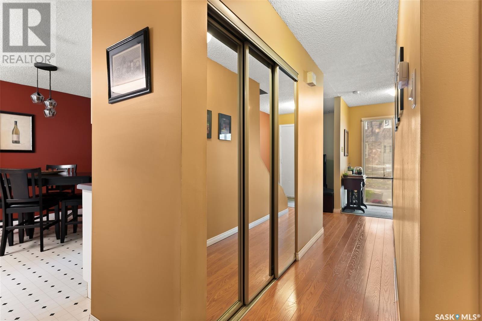 Welcome to 45 Spruceview Road — a well-kept 4-bedroom end-unit townhome offering one of the best locations in the entire Woodland Walk complex. Backing the outdoor pool, adjacent to Oakview Park, and overlooking a lovely, welcoming courtyard, this unit combines privacy with unbeatable access to outdoor amenities. Nestled in the quiet neighbourhood of Uplands, this spacious home features a functional layout with a cozy living room and an eat-in kitchen equipped with white cabinetry, updated hardware, and plenty of storage. A convenient 2-piece bathroom completes the main floor. Upstairs, you’ll find four generous bedrooms and a refreshed 4-piece bath, showcasing an updated vanity, mirror, and lighting. The basement offers a comfortable rec room, a dedicated craft space, and a laundry/utility room housing a high-efficiency furnace (2011). Step outside to a low-maintenance backyard featuring a covered deck, grassy area, patio, and a gate that leads to the back lane — just steps from the beautifully maintained outdoor pool. Additional highlights include central air conditioning, one electrified parking stall, central vac, and appliances (fridge, stove, washer, dryer). Shingles on the condo were replaced approximately five years ago. Condo fees cover exterior maintenance, reserve fund contributions, and insurance. Pet friendly complex. Located minutes from three elementary schools with quick access to Ring Road and Lewvan, this home offers comfort, convenience, and a hard-to-beat location in Uplands. (id:17834)