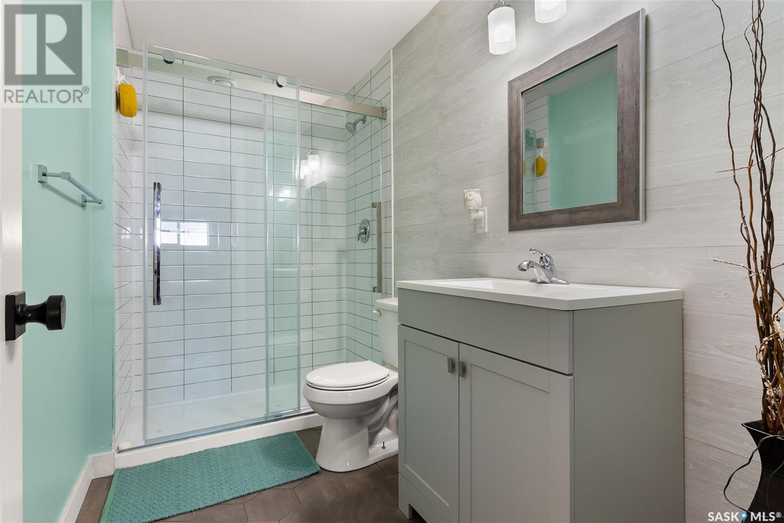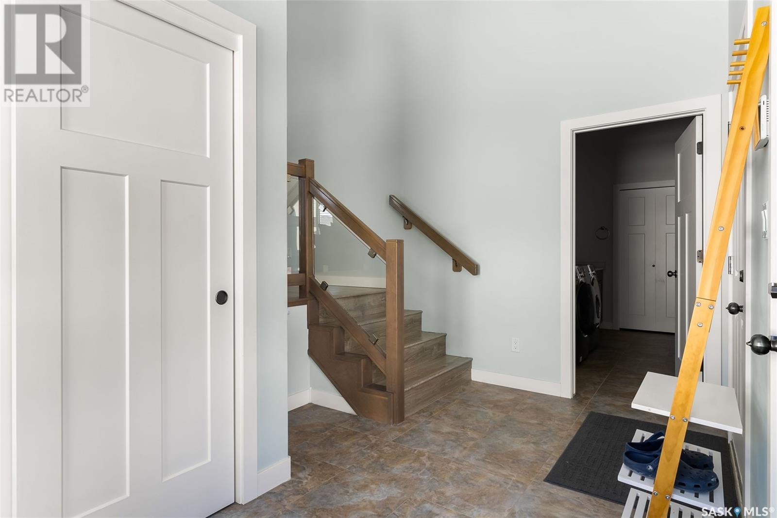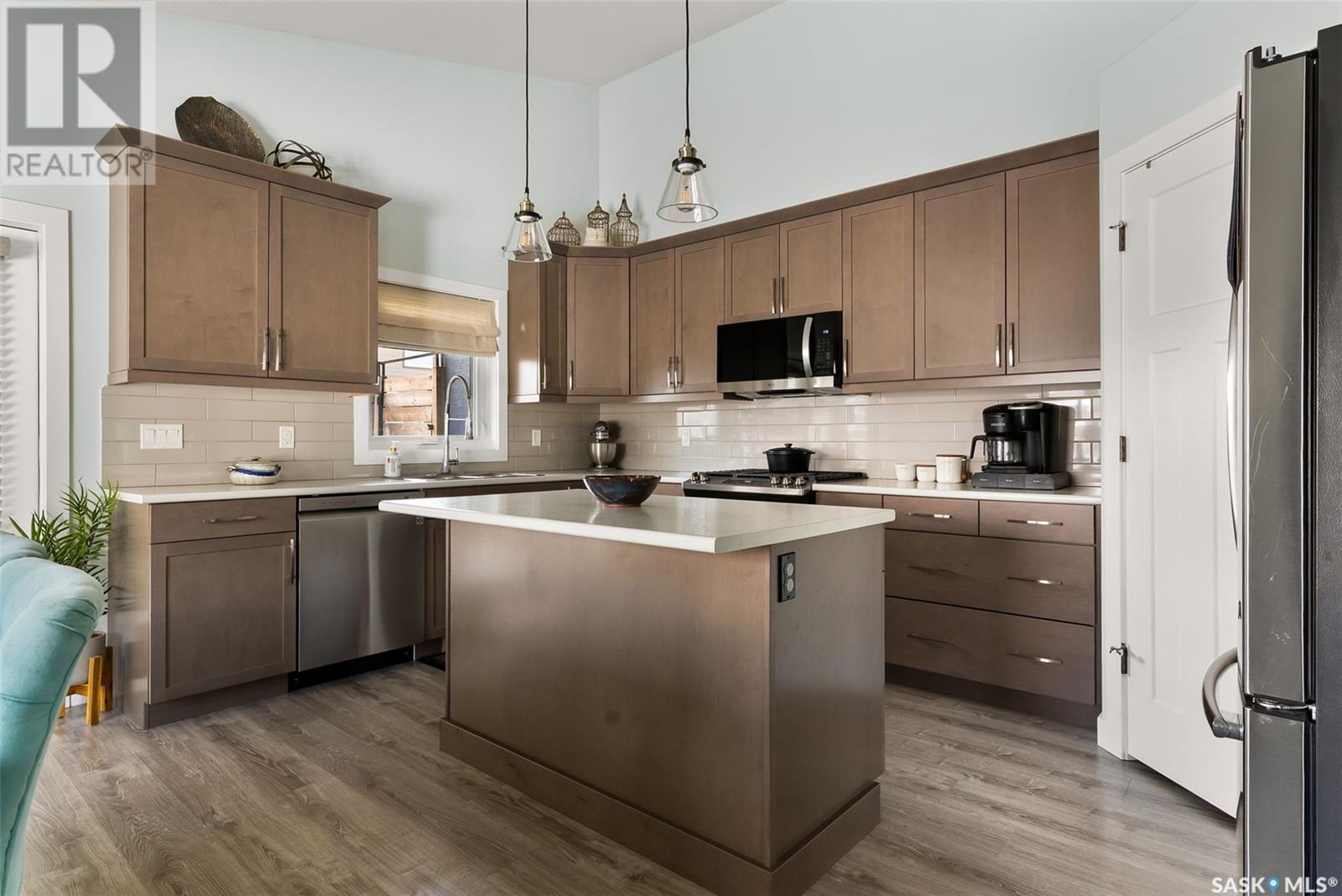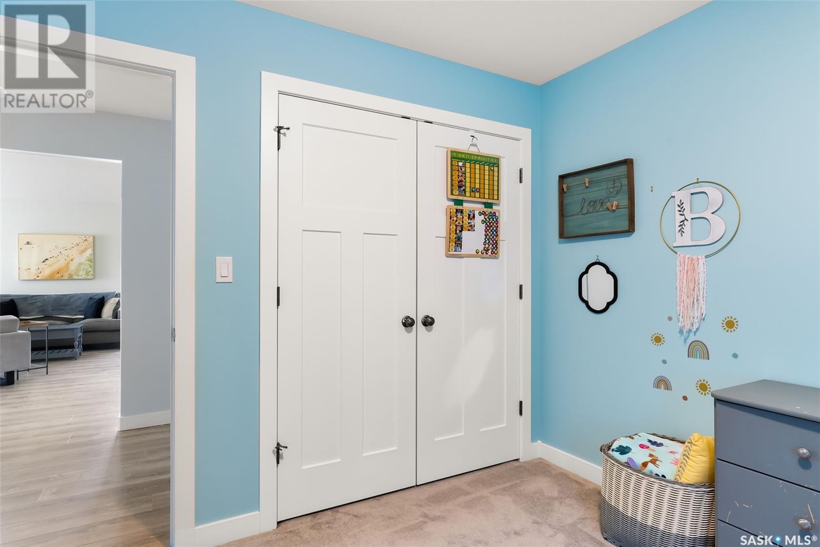 Welcome to this stunning 1,584 sq. ft. custom-built Gilroy bungalow in Regina’s desirable Maple Ridge. Situated on a spacious pie-shaped, fully fenced lot, this 5-bedroom, 3-bathroom home is just a short walk from St. Angela Elementary School, parks, pathways, and a spray pad—ideal for families. Step inside to a bright, spacious entryway with ample storage and direct access to the heated, insulated 24’ x 26’ double attached garage. Designed for convenience, the garage features transom windows for natural light and a 220V plug—perfect for a workshop or EV charging. The open-concept main living area is warm and inviting, featuring a stylish tile-surround fireplace. Four additional east-facing windows bring in beautiful natural light. The kitchen showcases custom “winter maple” cabinetry, a centre island, a corner pantry, a gas range, and a sleek glass tile backsplash. Custom Roman shades add a refined touch to the kitchen and dining area. The primary suite offers a walk-in closet and a 4-piece ensuite. Two more bedrooms and a full bath complete the main level, providing space for a growing family. Downstairs, the professionally finished basement expands your living space with a large rec room—ideal for entertaining or family movie nights. A feature wallpaper wall adds style, and rough-in plumbing is ready for a future bar area. Two additional bedrooms and a 3-piece bath make this level perfect for guests, teens, or a home office. Both basement bedrooms have new carpet for extra comfort. Step outside to the large, fully fenced backyard with plenty of room for outdoor enjoyment. A play structure makes this space kid-friendly, while the gas BBQ hookup ensures effortless summer grilling. A private fire pit area offers a cozy retreat for relaxing evenings. The spacious deck is perfect for entertaining. With its prime location, thoughtful design, and generous living space, this home is a must-see. Don’t miss out—contact your REALTOR® today to make it yours! (id:17834)