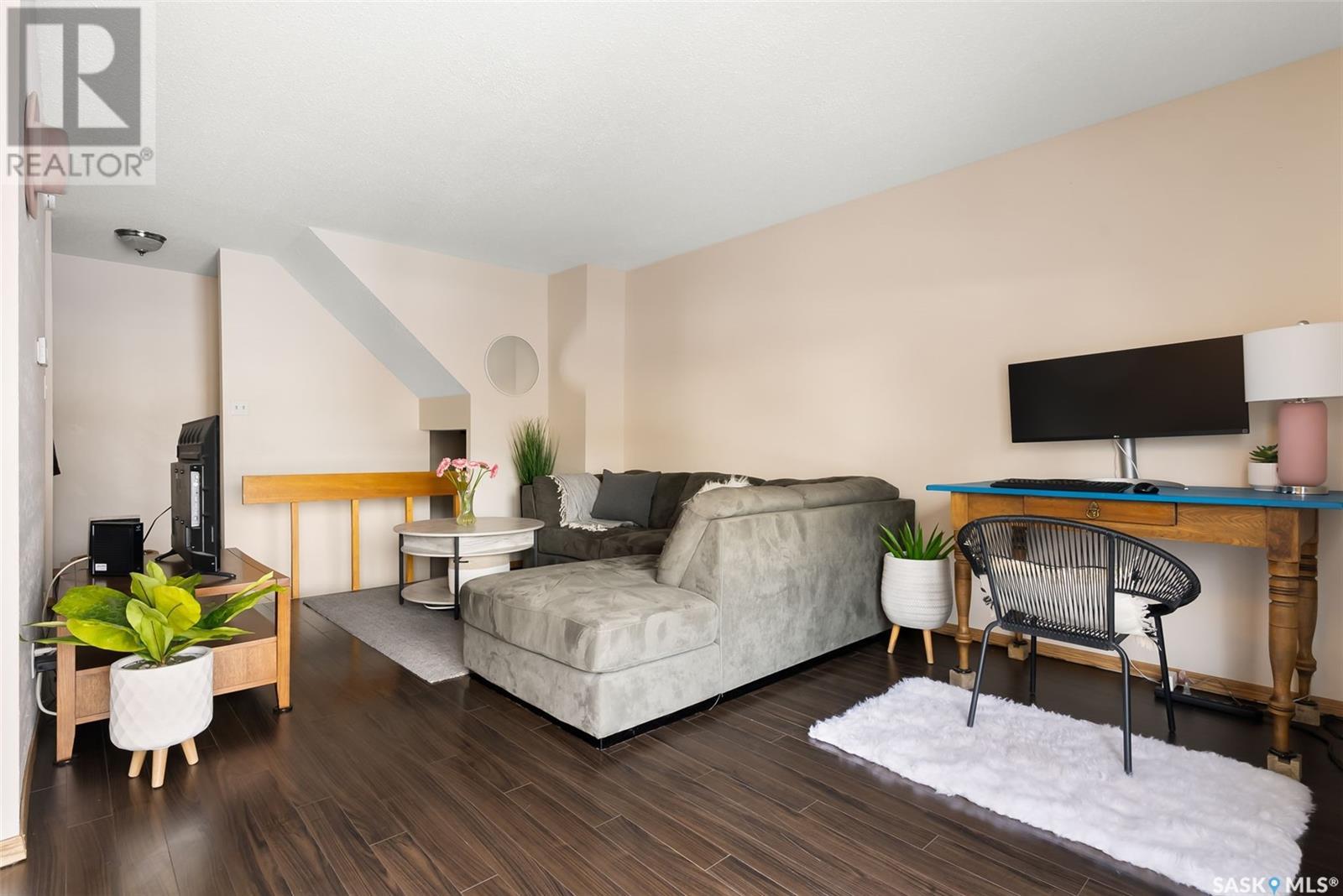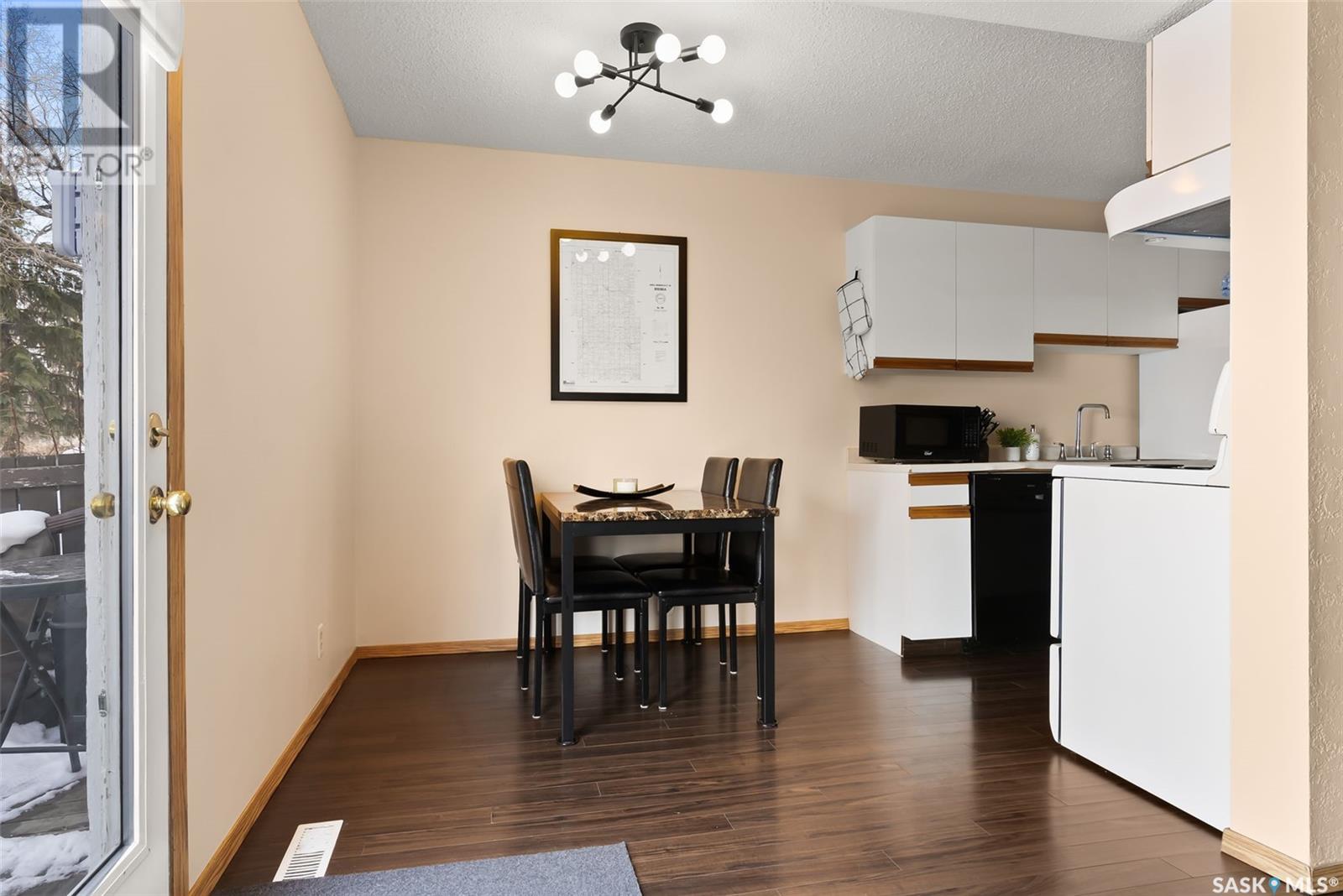 Welcome to #E 4212 Castle Road—one of the largest condos in the complex! This well-maintained condo is ideal for families, students, or first-time buyers, offering 3 bedrooms, two bathrooms, a full basement, and a private fenced patio. Ideally located near the University of Regina and SaskPolytechnic, this unit features newer laminate flooring throughout the living room, dining area, and kitchen. The main floor offers a bright, functional layout, including a spacious living room, dedicated dining area, and a well-equipped galley style kitchen with a new hood fan (2020). The 2-piece bathroom on this level was renovated in 2022 to include a new vanity, toilet, and vinyl plank flooring. Upstairs, you’ll find three generously sized bedrooms and a 4-piece bathroom renovated in 2021 that boasts a new soaker bathtub with surround, a new toilet, and vinyl plank flooring. The full basement features a fourth, non-regulation bedroom, completed in 2021 with charming pine ceilings, perfect for a guest room, office, or additional storage. Additional highlights include all appliances included, a new dryer (2024), and an owned water softener and water heater (new in 2023). The high-efficiency furnace in and central A/C (both new in 2020) ensure year-round comfort. Plus, the Condo Corporation recently installed a new sewer drain, providing added peace of mind. Condo fees of $314/month cover common area maintenance, exterior building upkeep, garbage, insurance (common), lawn care, sewer, snow removal, and water—offering low-maintenance, worry-free homeownership. Don’t miss this fantastic opportunity—schedule your viewing today! (id:17834)